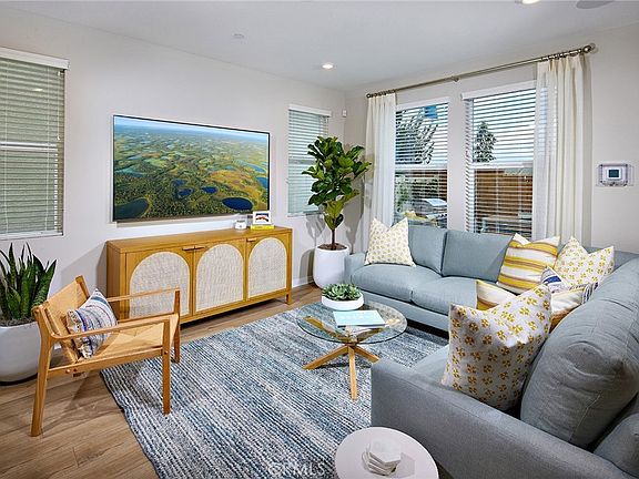 Ready for immediate move-in! Positioned without rear neighbors, this home welcomes abundant natural light and an added touch of privacy. Presenting the Ellis Plan 1, boasting 1,730 sqft, three bedrooms, two and a half baths, an open great room, kitchen, dining area, a second laundry room, and an enclosed outdoor patio for entertaining. This residence features a meticulously selected design studio upgrade package (Elite Style B) showcasing GE stainless steel appliances, white cabinets throughout, quartz countertops, and luxury vinyl plank flooring. Move in now and experience a home that combines thoughtful design with modern amenities. Inspired by Monterey and Mediterranean architecture, Ellis at Bedford in South Corona offers residences the opportunity to live close to world-class amenities such as resort style pools, spa, Sidecar Bar, outdoor dining area, hammocks, kids park, BBQ’s, lawn games and more. With nearby shopping, major roadways and award winning schools, Ellis is the perfect place to call home!