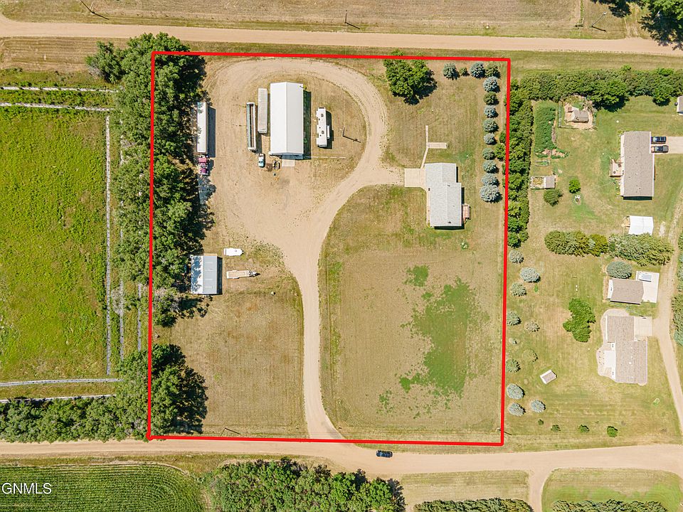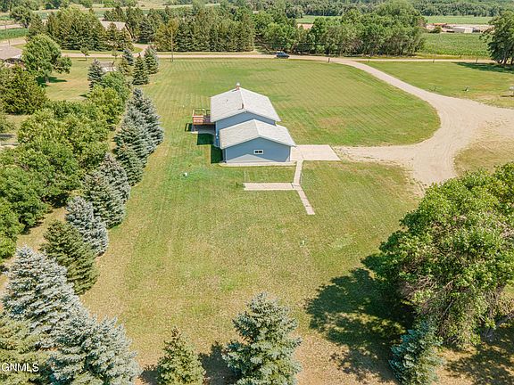 INCREDIBLE OPPORTUNITY to own a rural property minutes from city limits in Mandan with a view and the true beauty of MATURE TREES! Imagine the possibilities of a 15 STALL GARAGE (wow) with lots of areas to park outside on 3.47 +/- ACRE LOT with tons of privacy. This stellar property includes a 72x32 HEATED SHOP W/ FLOOR DRAIN (2304 sqft), 40X20 DETACHED GARAGE (960SQFT) or can be used as a BARN. This well-built HOUSE with 2,352 of living space with an attached 22x 28 attached garage with 616 sqft of space. This one-of-a-kind home is perfect for a HOBBY FARM! The main floor features an open floor plan with a spacious living room with access to a deck that's surrounded by Mature trees for that perfect setting you've always DREAMED OF, a nice sized GOURMET kitchen with custom cabinets, white appliances and an eating bar and even better a Big dining room, 2 bedrooms and a full-sized bathroom with linen cabinet on the upper level. The basement offers 1,176 sq ft of space that includes a massive living room with fireplace, 2 bedrooms, a ¾ bath and a large laundry room/mud room attached to the garage. This home is move in ready and keeps getting better with additional features that include rural water, well water, steel siding, private drive, newer hot water boiler, newer windows, gas hot water heater, lots of parking and more. Low Taxes & No Specials! If you're ready to TURN YOUR DREAMS INTO AN ADDRESS, CALL AN AGENT TODAY!