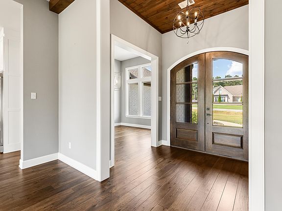 BEAUTIFUL ONE LEVEL HOME ON ONE ACRE!! Custom built by Schrader Homes, this residence features 4 bedrooms PLUS a media room. The primary suite includes a trey ceiling, freestanding tub, custom tile shower, and walk-in closet. The open kitchen features a built-in commercial-sized refrigerator/freezer, walk-in pantry, breakfast bar and wine fridge. Enjoy formal dining, under-cabinet lighting in all bathrooms, and a covered porch with a wood-burning fireplace. Spacious media room perfect for movies and games. Additional features include a mudroom with bench and hooks, a 3-car garage, and a tankless hot water heater. Great location, Bryant schools, and Springhill Elementary!
