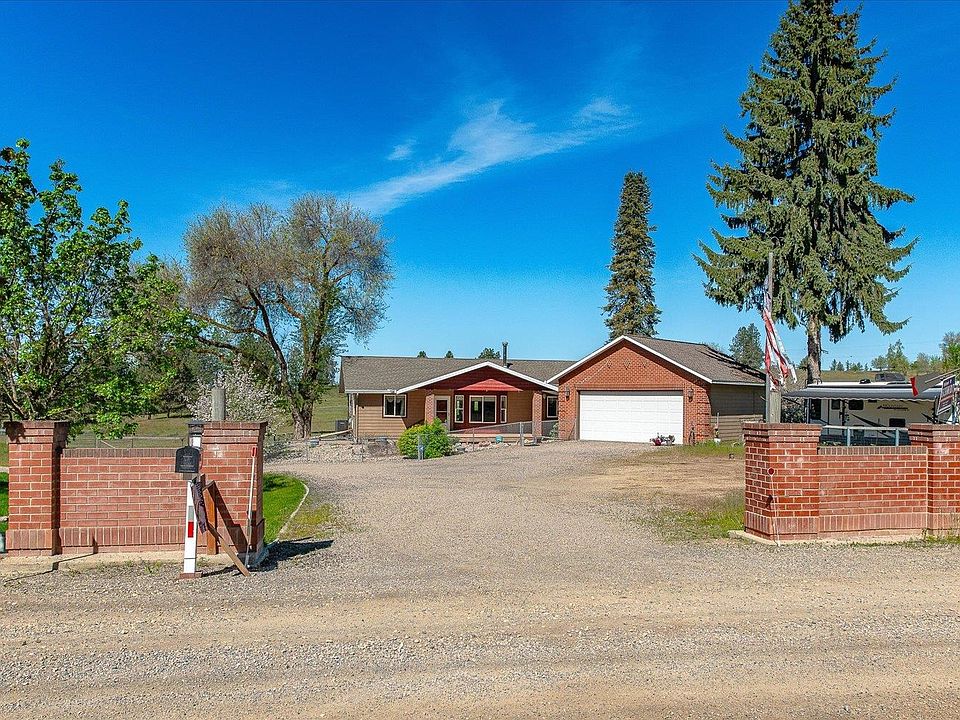Seller financing available! Country living on nearly 10 pastoral acres near Elk, Wa, Spokane County. 3 bdrm 2 bath home with amazing westerly views that look out over the fenced and crossed pastures. Ready for horses or livestock of your choice. Detached, fully finished two car garage with brick accents adds charm and grace to the home. Large 1500 sqft shop/barn features a storage room. Nice two stall horse-set up w/tack room. Good well. Easy to maintain rocked yard with 2 completely fenced pet yards. Covered front sitting porch and a small back porch. Full RV hook-up on side of garage.