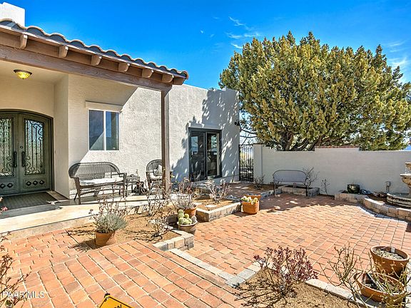 This home is a must see and will sell fast! Amazing home that has been completely updated. From the serene courtyard entry to the roof top viewing deck, this home, the views and perfect floor plan will capture you the moment you walk through the double wrought iron front door. Oversized kitchen/entertaining area, wine frig, fireplace, barn wood doors, double master, two additional spacious guest bedrooms plus den. Private backyard with views of the Bradshaws and Mingus Mtn. Apricot, peach and cherry trees. High tech ''nest'' home op system/ new fire detectors connected to talking alarms. Dream garage with 3rd car RV height and epoxy coated floor. Rolled hot mop roof has fresh coat of elastomeric. Great location, close to Trader Joe's and Costco.