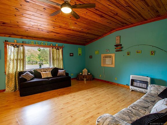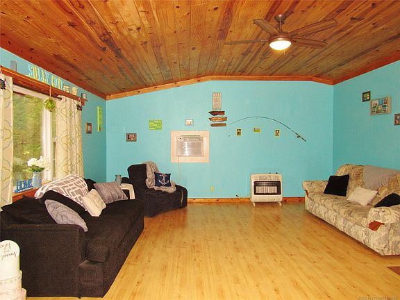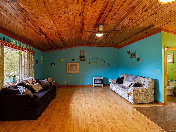 Lakefront acreage w/cozy cabin awaits your arrival! Bring your pole, ice cold drinks & have a good ol' get-together w/family & friends. Open floor concept w/spacious living rm w/picture window, lg kitchen for entertaining & nice dining area. Over-sized bedroom could accommodate multiple bunk beds or 2 full size beds. laundry rm/with 1/2 bath. Jump in the lake & take a swim. Need a bathroom? The back porch offers a 1/2 bath. No need to get the wood floors wet inside. Enjoy the covered patio. RV hookup.
