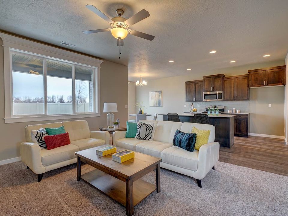Tucson ; Blackrock Homes. Spacious rooms and thoughtful design makes the Tucson model a favorite! This is our largest two-story layout in Movado. Custom cabinets in kitchen w/ full tile backsplash, slab counters, large island & walk-in pantry. Upstairs offers bonus room(4th bedrm) w/ closet, laundry room, the master bath & main bath each w/ dual vanities & storage, covered patio. Pics & tours are similar. LANDSCAPE MAINTAINED BY HOA, NO MOWING!!