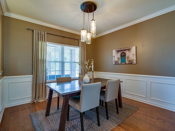 Beautiful home with spacious rooms! Warm hardwoods through 1st floor living area. Vaulted ceiling in living room with corner fireplace. Formal dining w/ wainscoting & pass through to kitchen. Roomy kitchen w/ ample cabinetry, granite counters, center island, & stainless appliances. Two large suites- one on each floor. Lots of storage space. Bonus room over garage w/ projector & screen! Covered back porch with fireplace. Extended patio with privacy fenced back yard & partially in-ground pool!