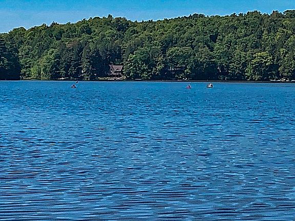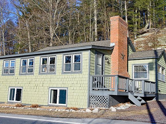 Delightful English Cottage style home that offers a vacation atmosphere 365 days a year. The view of Lake Beebe is stunning and takes on multiple personalities through out the year. Walk across the road to your private 125 feet of lake frontage where you will enjoy the extensive decking, cruises on your motorized floating raft, or just enjoying your favorite beverages while watching the sun set. The home offers way more space than the eye realizes from the exterior, as the interior reveals almost two floors of finished living area. The central living room is so inviting w. the softwood floors, wood burning fireplace and the large window that takes the lake view. The living room is open into the kitchen and dining area allowing for the perfect spot to entertain. The balance of the first floor has two nice size bedrooms and full updated bathroom. The lower level is easily accessed with the large stair well which has an office/laundry room, 3/4 bathroom and a gorgeous 22x25 family room w. the second wood burning fireplace. This room is so spacious it could be broken down into two rooms if desired. To the rear and side of the house you will notice that it is totally fenced in and offers adequate privacy. There are two sheds on the property, one down by the lake for your chairs, floats, etc. and a 12x20 shed up by the house that offers incredible storage. Eagle Rock hiking trails are close by and you are a minutes drive to numerous Vermont attractions. Sweet.