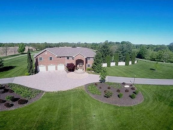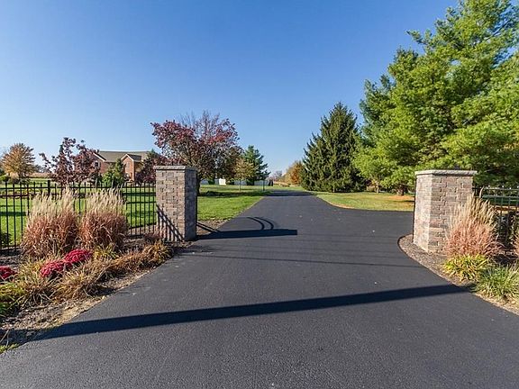 Executive Luxurious home across from Hickory Stick Golf Course nestled on beautiful 10.5 acre private gated estate. Home features a stunning remodeled kitchen stainless steel appliances new designer tile and carpet throughout. New modern master bath featuring a soaking tub, heated walk in marble shower w/3 heads, marble floor and gorgeous marble vanity top; resurfaced stone master-fireplace. Other amenities incl a 900sf+ guest house that is a 2 bedroom 1 bath, living room, dining room,laundry, kitchen with a 1 Car Attached Garage, 60x80 pole barn with electric, an XL heated saltwater pool w/slide, Cabana house by the pool has a private outside shower,and 1/2 bath, kitchen and bar, lg pergola, 5 acres of crop land.Truly a Executive estate