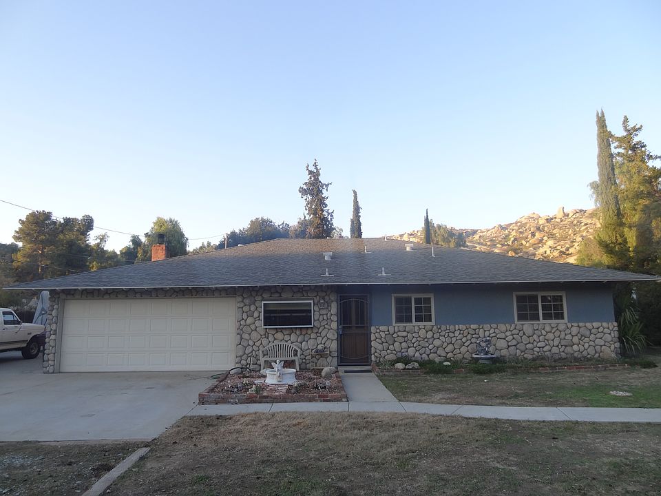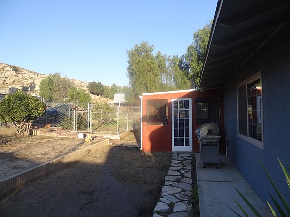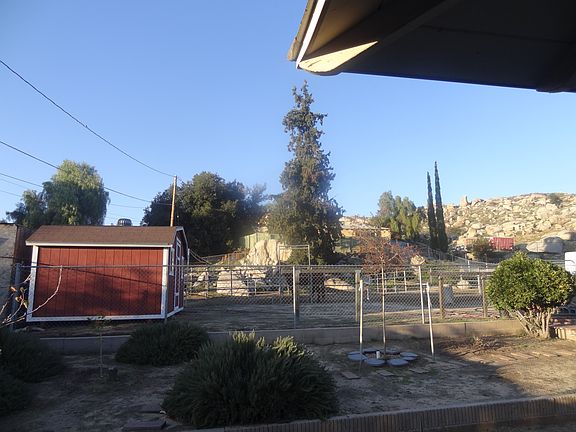 Incredible horse property in the Hemet hills. This 3 bedroom 2 bathroom single story ranch home has 1710 square feet, was built in 1968 and sits on a large 22216 square foot lot zoned for horses with corrals, stable and a barn already in place. There is also a chain link fencing around the entire property. The home has recently had all windows replaced with dual paned glass. Other upgrades include ceramic tile throughout the kitchen, entry and bathrooms. The kitchen has been beautifully remodeled with full granite slab counters, all black appliances that include a cookstop stove, built in oven, dishwasher and trash compactor and a breakfast counter. The living room has a beautiful floor to ceiling brick fireplace. The master bedroom is a good size featuring a remodeled master bathroom that has plenty of cabinets and a large tub and shower enclosure.