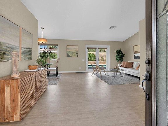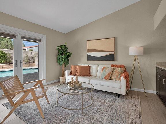 Located in the heart of Palm Desert, this beautifully remodeled home offers the ultimate in elegant desert living. You'll be captivated by the striking desert landscaping, accentuated by professionally designed lighting that highlights the natural beauty of the surroundings. Discover a warm, inviting atmosphere inside, featuring a spacious living area anchored by a cozy gas fireplace. The open-concept design flows seamlessly into the updated kitchen, which boasts extensive shelving and storage solutions. Deep kitchen cabinets and pull-out shelving make organization a breeze, while a makeup sitting area adds a luxurious touch in the primary suite. Every detail has been carefully considered, from the sparkling finishes throughout the home to the practical amenities that elevate daily living. Two 55-inch smart TVs are mounted and ready for your entertainment, with smart technology providing a sleek, modern feel. Newer AC/Furnace, and you will have never seen such a clean environment for a furnace and water heater. The primary suite is a true retreat, featuring a large walk-in closet with abundant storage space and a spa-like en-suite bathroom. Step outside into your very own private oasis, with a secluded backyard featuring a pool and spa providing the perfect backdrop for relaxation. Don't miss your chance to own this desert gem, where every detail has been meticulously crafted to offer you unparalleled luxury, comfort, and privacy--truly the ultimate desert retreat.
