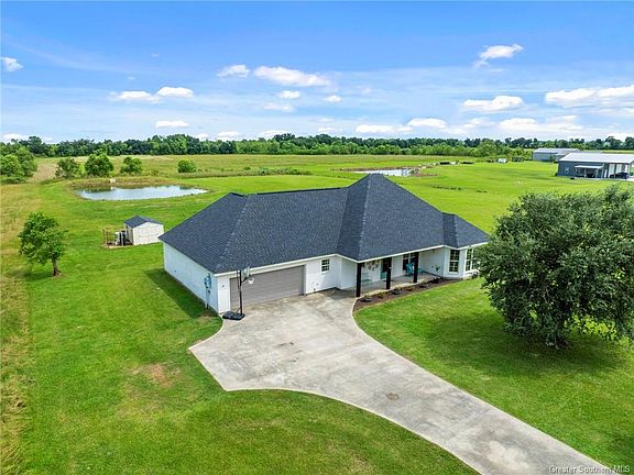 Totally redone since Hurricane Laura, this 3 bedroom, 2.5 bathroom house is like new! This home offers the perfect blend of comfort and functionality with a split and open floor plan, sitting on a generous one and a half acre lot. The spacious kitchen is a chef's dream, boasting plenty of cabinets, extensive counter space, and a convenient eat-in bar. The master suite is a true retreat, featuring an extra large walk-in closet and an en-suite bath with a separate soaker tub and shower. A large laundry room, complete with cabinets and additional storage space, adds to the home's practicality. Step outside to enjoy the peaceful serenity from the back porch, overlooking a picturesque pond with it's own built-up levee for a personal shooting range. Special features include a two-car garage, providing ample space for vehicles or extra storage as well as an added 50-amp subpanel in case the need arises for a generator to run the essentials. With plenty of room for kids to play or just to enjoy the country atmosphere, this is the place in the Bell City school zone just for you. This home truly offers all the comfort, space, and tranquility you want and is in flood zone X (the good zone). The Seller is willing to help with the Buyer's closing costs with an acceptable offer. All measurements are more/less.