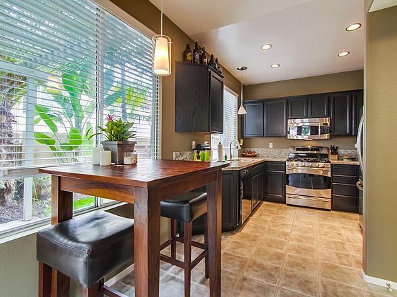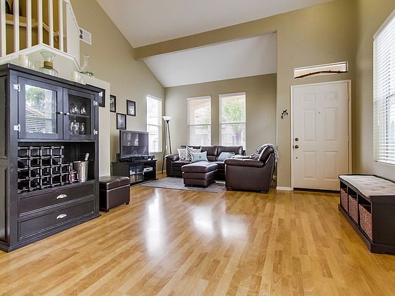 One of the best locations in the back of the gated complex with ample greenbelt on side and back of house! Recent upgrades include granite-slab and stainless kitchen plus paint and carpet - plus the master bathtub includes a shower-head (not all do). High ceilings, storage under stairs, large walk-in closet in master bedroom and driveway is big enough for extra parking. Home is in great shape too. Community pool area is a big plus!