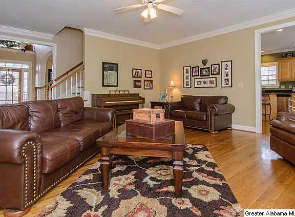 Executive Home situated on Cul-de-Sac with Beautiful Mountain Views. Brick Traditional Located in Gated Community of Greystone Farms includes Clubhouse, Pool, Lake and Walking Trails. Open Two Story Foyer, Living Room, Large Formal Dining Room with Wainscot and Heavy Moldings, Spacious Great Room Open from Kitchen with Marble Fireplace. Awesome Kitchen includes Gas Cook Top, Pantry, Large Island, Built in Desk, Breakfast Room and Granite Counter Tops. Beautiful Hardwood Floors Throughout Main Level (Except Master Bedroom).Large Main Level Master Suite with Jetted Garden Tub, Separate Shower, Separate Vanities and Huge Walk-In-Closet. Tons of Floored Walk-In Storage Space Upstairs and Three Spacious Bedrooms, Two Full Baths (one Jack and Jill) and BONUS Room perfect for Kids Den/Office or possible 5th Bedroom. FULL Unfinished Basement Plumbed for Future Expansion. Flat Private Backyard with Professional Landscape. Award Winning Hoover Schools.
