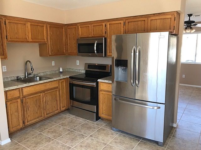 WOW! All new ceramic tile throughout. New two tone paint inside. New light fixtures. New ceiling fans. New Stainless steel appliances. New Kitchen counter tops. Huge back yard. Close to schools and Family Park. New New New. Thank you