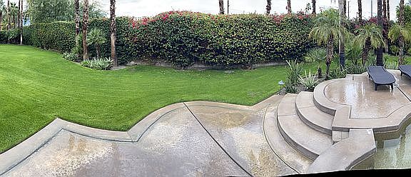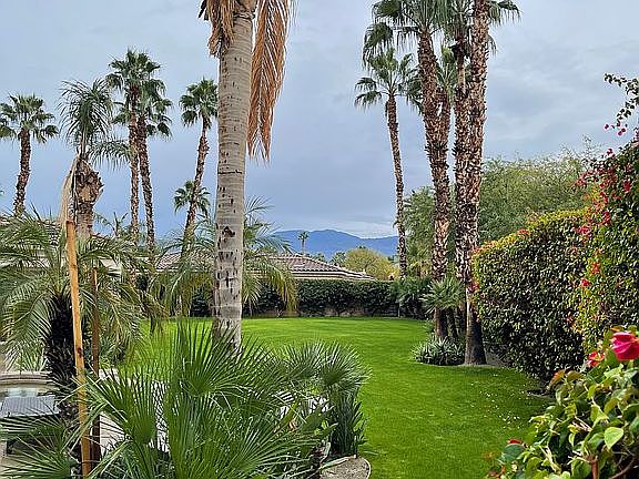 Welcome to Chatham Court, a small, private gated community perfectly located in the heart of Palm Desert. Step into your own Private Paradise on .37 acres, which gives a feeling that you are at a Fabulous Private Resort! The Free Flowing Salt Water Pool and Custom Spa Area are surrounded by 27 Palm Trees, Bougainvillea, Birds of Paradise, Mediterranean Fan Palms, and Mountain Views on what is by far the Largest and Best lot in all of Chatham Court. This 4/BR 3/BA home has the perfect Open Plan for Entertaining. The Granite Kitchen and Bar overlook the Great Room, and the Master Bedroom Wing and Separate Office are split from the Guest Bedrooms for Maximum Privacy. There is also a Formal Dining Room with a Custom Stained Glass Window for Special Occasions which connects to the Gourmet Kitchen through the Butler's Pantry, complete with Built-in Cabinetry and a Wine Rack. This Home is Highly Upgraded, and Beautifully Landscaped. Large Built-in Wall units in the Great Room and Master Bedroom are just a few of the Special Features this home offers. A new Wi-Fi automation system was installed in 2022, that you control using Alexa, Siri, a personal computer, laptop, or a smartphone, allowing control of the swimming pool and spa functions, the 400K BTU Raypack heater (installed in 2019), temperatures of the swimming pool & spa, all outside lighting functions, and is expandable to include solar and many other options. There are new appliances including a stainless steel interior dishwasher with a Built-in garbage disposal, instant hot water (installed in 2023), a new quiet heavy duty garbage disposal at the kitchen (sink installed in 2024), a second new garbage disposal at the utility stainless steel sink in the laundry room installed in 2024 that can be used in a kitchenette setting for guests, a central air system installed in 2017, a new salt water control system for the pool and spa installed in 2023, Nest Thermostats, a state of the art security system by Comtron, and a Wi-Fi Router System with a download speed of 600 Mbps.