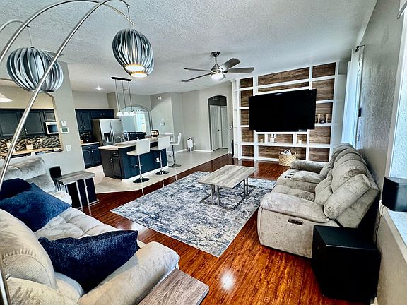 3/2 POOL HOME FULLY FURNISHED SHORT TERM AND LONG TERM RENTALS on 1/2 acre with extra large double corner lot, a fire pit area under the oak tree. Updated home with nice finishes and wood floors, LVT floors and tile. Large double lot fully fenced! Room for Rv parking. Large family room and built in entertainment center. Large screened and covered pool area with lots of covered patio space. Vacant lots on both sides for lots of privacy. Second living is very well separated from main living room and great play room! FULL SPEED COMCAST CABLE INTERNET AT THE HOUSE (some homes in North Port do not have this option) ALL FURNITURE CAN STAY IF DESIRED AND FOR ADDITIONAL MONTHLY FEE OF 600 PER MONTH SHORT TERM FULLY FURNISHED PROPERTY FOR RENT YEAR ROUND. NO MINIMUM AMOUNT OF TIME. RATES VARY DEPENDING ON LENGTH OF STAY AND TIME OF THE YEAR.
