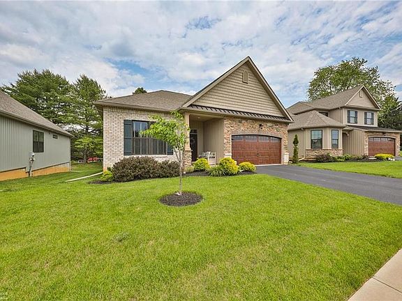 PVRM-Seller will respond to offers between $450,000 & $519,876. Stunning 2 BR modified Reynolds I ranch style home located on a premier cul-de-sac lot in The Fields at Indian Creek a 55+ active community.This home is located on one of the best lots in the subdivision & backs up to a beautiful & quiet natural landscape. 1 story living w/open concept floor plan, 10' ceilings, lots of upgrades, full daylight basement plumbed for a full bath w/exterior staircase & quick possession make this home a truly compelling opportunity. Large entry foyer w/HW floors opens to a spacious living room w/HW floors & gas FP, amazing kitchen w/oversized quartz center island & tile/glass back splash, stainless appliances, walk-in pantry & DR w/crown molding, both w/HW floors & sliding door to deck. Off of the entry foyer is an office, 2nd BR & full bath. The MBR suite has crown molding, recessed lights, walk-in closet, full bath w/zero clearance tile shower stall & double sink. Laundry room + 2 car garage.