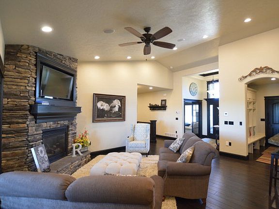 **ABSOLUTELY GORGEOUS CUSTOM HOME ON ACRE LOT**OPEN CONCEPT FLOORPLAN WITH TONS OF GREAT FEATURES**MAIN FLOOR: You'll Love the Great Room: Stone Fireplace with TV Above, Hardwood Floors, Black TrimFrench Doors Open to the Office/Formal Living Room**Stunning Kitchen has Wrap-Around Breakfast Bar, Granite Counters, Double Wall Ovens, Custom Two-Tone Cabinetry & Awesome, Extra Large Butler's Pantry**Beautiful Master Suite has Hardwood Floors, Tray Ceiling, Crown Molding, Deck Access & Private BathMaster Bath with European Shower, Double Sink Vanity, Granite Counters, Soaking Tub, Commode Room & Walk-In Closet**Bedrooms with Hardwood Floors & Big Closets**Full Bath has Granite Counter, Undermount SinkLockers**Laundry Room has Loads of Storage, Half Bath**DOWNSTAIRS: Fun Family Room with Wet Bar, Surround Sound & 2 Areas**Theater Room has Raised Seating & Media Cabinet**Bedrooms with Walk-In Closets**Cold Storage**EXTRAS: 2 Gas Water Heaters**Central A/C**2 Septic Drain Fields**Triple Pane Windows**Over 100 Can Lights**EXTERIOR: Wind-Proof Deck**Firepit Patio**Stamped Concrete**Designated Spot for a Large Shop**1.07 Acre Lot**Sprinkler System**Steel Edged Landscaped Beds**A MUST-SEE!!**