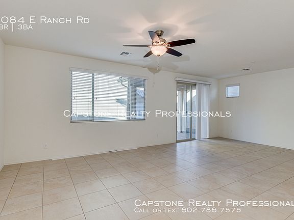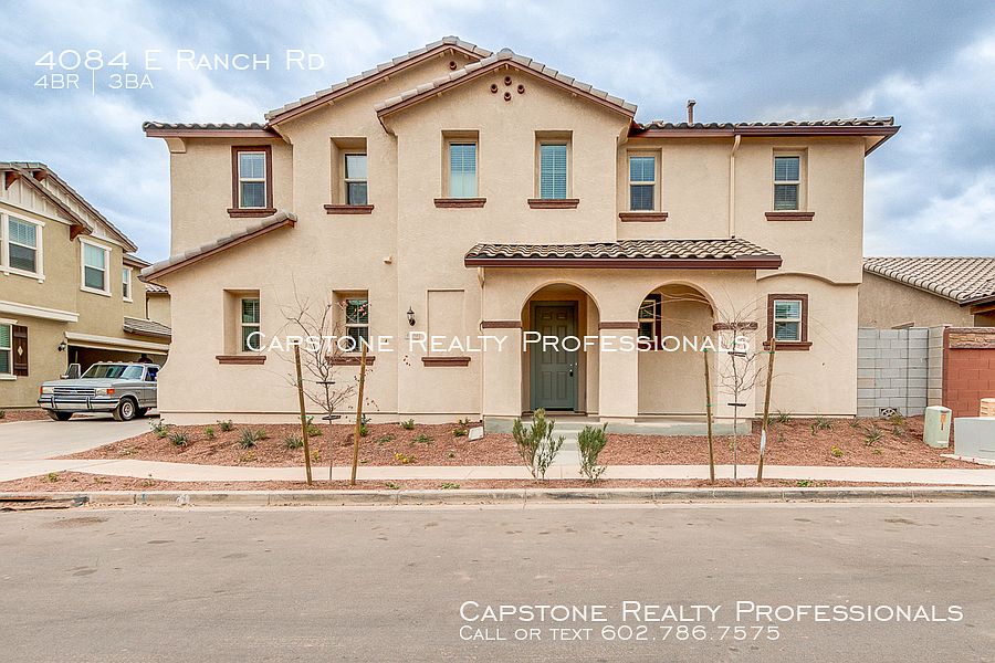 Beautiful 4 bedrooms and 2.5 bathrooms with 9 ft. first floor ceilings, granite counter tops, brand new stainless steel appliances and a washer and dryer, and an 8ft high garage that is perfect for SUV's or large trucks! This energy efficient home includes ceiling fans in every room as well as a den and a computer room/study room with built-in desks! The back yard features a covered patio with a ceiling fan as well as a non covered patio with brand new desert landscaping. The community features a pool, biking/walking path, children's playground, a park with ramadas and bbq's that is within walking distance!. Built In Microwave. Carpet. Community Bike Path. Community Children's Payground. Community Pool. Desert Landscaping. Double Sink Vanity. Garage. Kitchen Island. Range Oven/Elec. Refridgeration. Seperate Den. Tile Flooring. Washer And Dryer