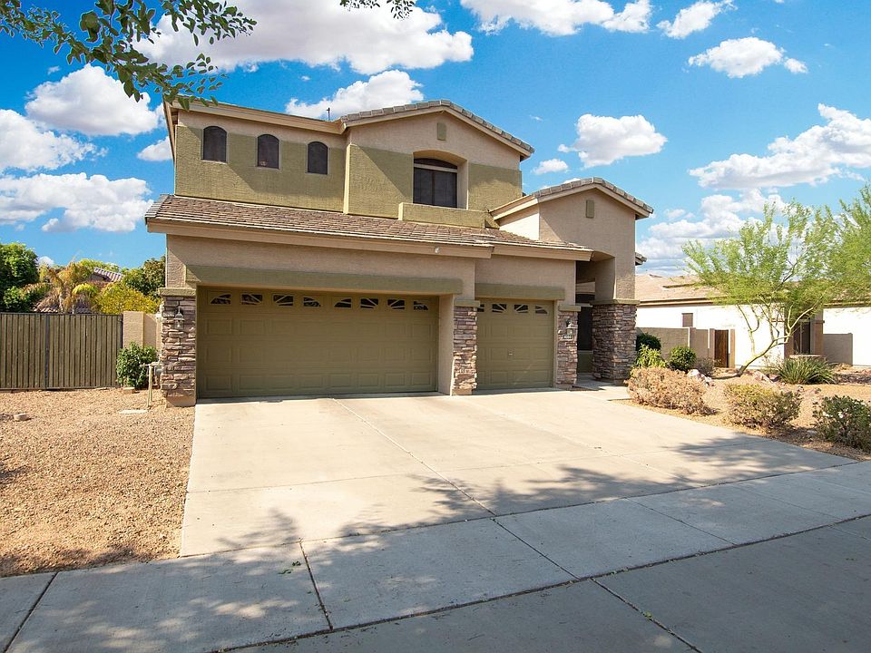 Gorgeous Power Ranch home! 4 bedroom 2.5 bath, plus oversized bonus loft with french doors. 3 car garage and RV gate! Large lot! Open floor plan, formal living and dining areas, neutral paint tones. Updated kitchen, beautiful white cabinets, granite counter tops, stainless steel appliances, subway tile back splash, and gorgeous updated light fixtures. Master suite is located on the FIRST FLOOR with en-suite. Backyard boasts covered/oversized patio, large grassy area, extended pavers with fireplace, and garden area. Brand new exterior paint. Perfect family friendly neighborhood, minutes from Gilbert Regional park. Buyers to qualify for solar lease. Solar panels ARE a benefit! Owners did not pay an electricity bill from November-May, only the $21.56 service fee that SRP requires. Owners received a credit in May because the solar panels overproduced energy. Overproducing energy on a 2 story, 2 ac unit home is a BONUS! Tons of updates! New PVC piping irrigation system, garage door opener, ring doorbell, exterior paint, updated kitchen, light fixtures, patio extension with pavers, RO system, reverse osmosis and tons more! Bonus/hidden storage room, perfect for storing things, could be used for a gun safe as well.