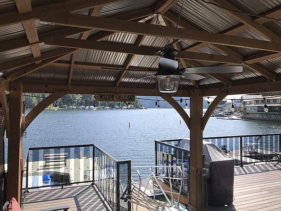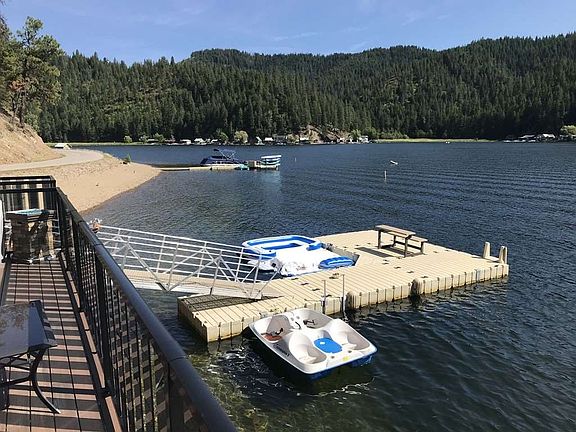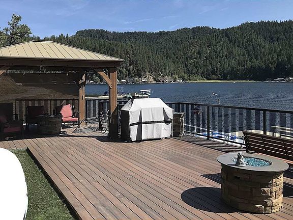 Deer Lake Waterfront Property with deep wtr frontage. Multi-tiered... Several use able areas. The waterfront area is already set up to pull in YOUR RV ( ! RV NOT Included !) plug into Avista power (2 hookups) & Stevens PUD water & sewer hookups. Gorgeous large deck over the waterline. Newer, top-of-the-line dock. Park water-side and jump in! Relax under the lit pergola in the evenings. In the future build your year-round dream cabin at this waterfront property across the Rd on the hillside. Tons of Parking!