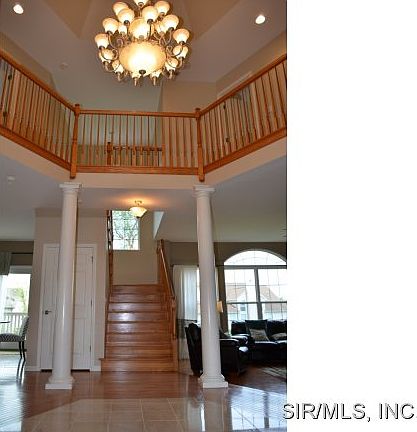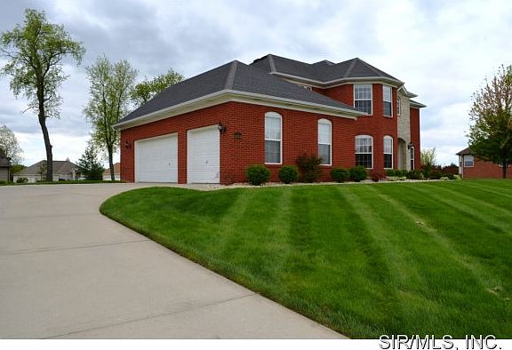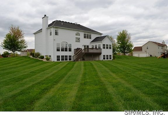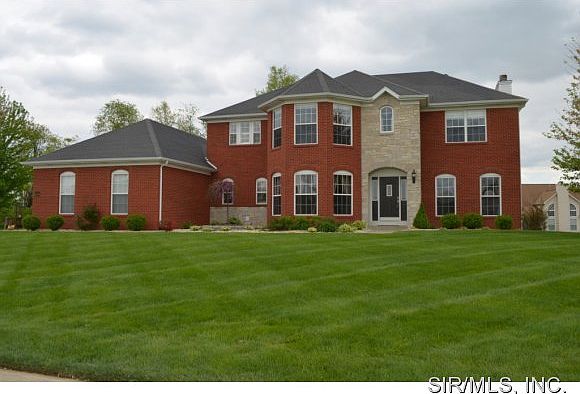 A decorators touch inside and out. Almost 3/4 of an acre of lush manicured lawn and landscaping with irrigation system and underground dog fence (collars to stay). The two story foyer makes a grand entrance to a formal dining room, private den, and a sunken living room with hardwood floors and fireplace. The hardwood floors extend into the open luxury kitchen with breakfast nook and family room. Gorgeous granite countertops, Electrolux stainless appliances, custom shelving, surround sound speakers, and walk in pantry. Upstairs youll find 4 bedrooms with a spacious master bedroom with coffered ceiling, a custom walk in closet with St Louis Closet Co. The luxury master bath has a jacuzzi tub, new bath fixtures and new shower door. The additional bedrooms share a jack and jill bath and a private bath for bedroom 4 with each bedroom have a custom closet organizer as well. The lookout basement is ready to be finished. Minutes to Scott Air Force Base, I64, and shopping.