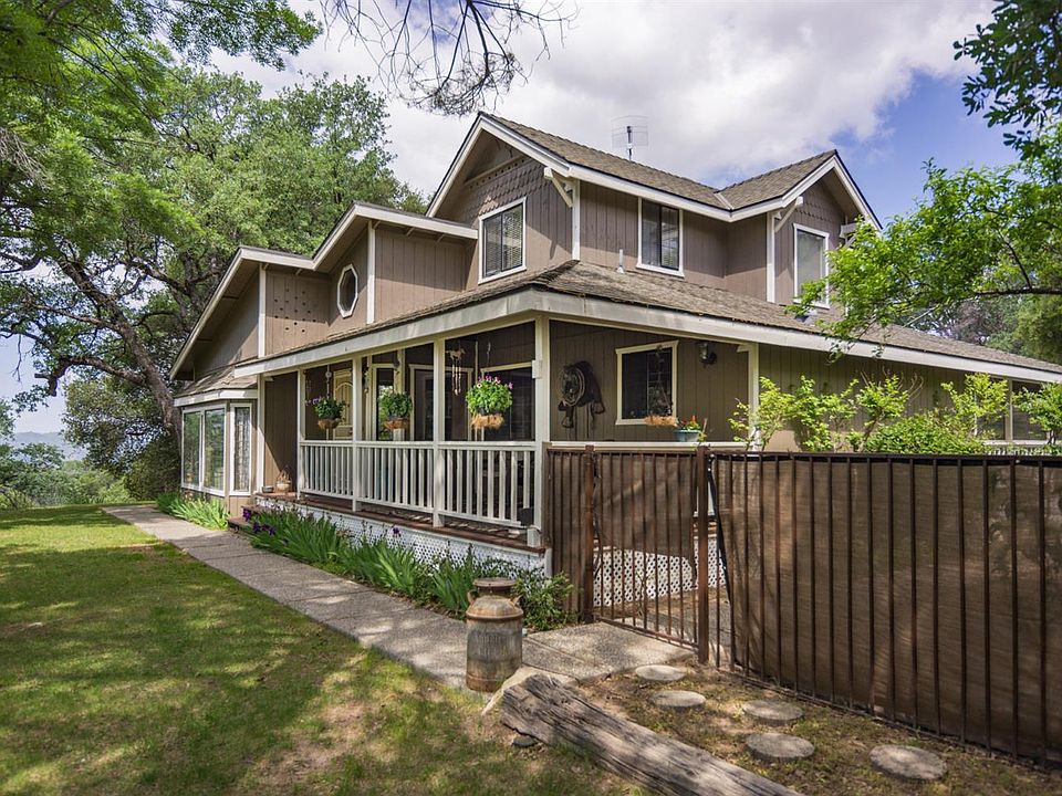 Horse set up in Oakhurst with incredible mountain vista views! A country 2 story farm style home on a 4.63+/- acre corner lot. This 2 story home has the master bedroom on the main level and the other 2 bedrooms upstairs. It is a 3 bedroom, 3 bath country charmer with a covered porch and patios. This property is fenced and cross fenced for horses. There is a small barn and tack room and a separate 2 car garage. Enjoy the fenced in built-in swimming pool. Enjoy the Sierra views from this home and the front porch! Quiet and private. A must see.