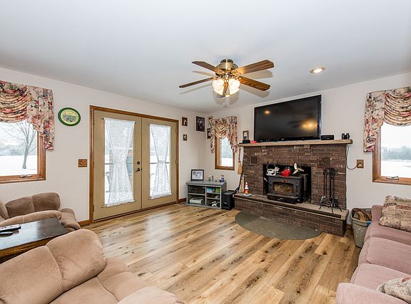 5 ACRE WADSWORTH RANCH w/POLE BARN! One owner Solid Brick home has it all! Start outside w/Private Pond, 2.5 Car Attached Garage, and 30' x 48' Pole Barn. Barn has Concrete floor, Electric, Front & Back Overhead Doors, and 1/2 Bath! Step Inside to all NEW Luxury Vinyl Plank Flooring that is Scratch AND Water Resistant; GREAT for Kids or Pets! Cozy up to Wood Burning Fireplace in Family Room with open sight lines to Kitchen and Doors to Continue Entertaining on Outdoor Patio. Kitchen features TONS of Dark Cabinetry and ALL Appliances Stay. Convenient Floor Plan with Separate Living Room (currently used as office). Down the hall to Master w/Large Double Closet and Private Bath w/Granite Countertop and Walk In Shower. Other 2 Rooms are GREAT size too! Basement has some Finished Space including third Full Bath w/Walk in Shower, 8 Seat Bar, and all Mechanicals. Windows, Roof, Soffit, & Gutters all replaced in 2003. Enjoy the Peace & Quiet w/so many possibilities to make your own!