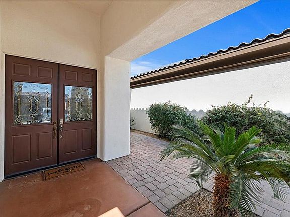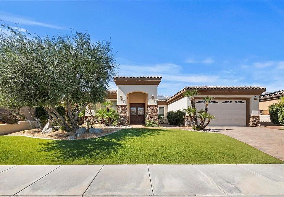 Discover your desert oasis at Sandpiper, located in one of Palm Desert's most desirable non-gated communities just off West Hovley. This stunning home, with its exquisite stone-front exterior, offers a blend of luxury and convenience that's truly hard to find. Featuring three spacious bedrooms and a versatile office or den that can easily be transformed into a fourth bedroom, this home is designed for both comfort and flexibility. Each bedroom comes with its own private bathroom, ensuring privacy for everyone, while the primary suite indulges you with a separate soaking tub and shower, offering a true retreat. The chef's kitchen is a dream come true, equipped with a 6-burner stove, a large island with bullnose granite, and ample storage space. A butler's pantry with a sink and wine cooler makes entertaining effortless. The family room is equally impressive, showcasing custom wood cabinetry and an elegant gas fireplace framed by a wood mantle and granite surround. A formal dining area provides the perfect space for gatherings and celebrations, while luxury vinyl flooring flows throughout the home, creating a cohesive and upscale feel. This home is designed for sustainable and low-maintenance living. Enjoy the benefit of solar energy with a significant credit from the electric company, and the front and back yards feature artificial turf for easy upkeep. Energy-efficient shutters adorn the primary bedroom, bath, kitchen, and family room, helping to keep your home cool and comfortable. Additional touches like storage cabinets in the two-car garage and a laundry room sink add to the convenience and functionality of this home. Step outside to your private resort-style backyard, complete with a large pebble-tec pool and a raised spa, all set against breathtaking mountain views. An extended patio with an overhang provides the ideal spot for outdoor dining or relaxing in the shade. The office or den is a standout feature, boasting a beautiful wood bookcase with a ladder, perfect for those who appreciate custom details. Tall ceilings enhance the open and airy feel of the space, making it a truly inviting place to call home. Pavered driveway. With no HOA dues and a move-in-ready condition, this home is a rare find. Its location combines privacy with convenience, making it the perfect place to enjoy the Palm Desert lifestyle. Don't miss out--reach out today to schedule a private showing and discover all that this incredible home has to offer!