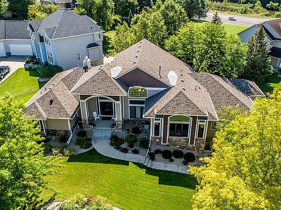 Enjoy the Lake lifestyle with Prior Lake access and boat slip directly across the street. Spectacular open concept custom walk out rambler home offers a soaring vaulted entry, double kitchen island perfect for entertaining lake guests, dark stained wood floors, granite counter tops, stainless appliances, 18' ceilings, spacious breakfast bar, 4 season porch and an executive office w/lake views. The main level master suite features new carpet, dual walk in closets, a tray vault ceiling, gas fireplace and separate tub/shower. The lower level offers a full bar, game room area, exercise room, ample storage and a walk out. The high demand Windsong neighborhood offers great amenities including volleyball, tennis and basketball courts, a private beach & pavilion for lake entertaining, boat slip and brand new docks. Great location in the 719 school district and Jeffers Pond Elementary.