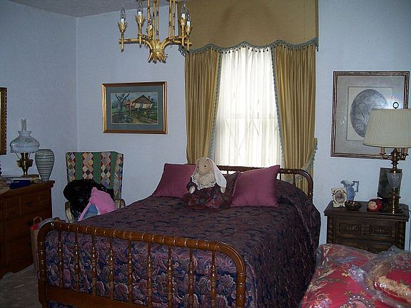 Family room with fireplace and beamed ceiling. Sunroom with solar shades across the front of house. Two kitchens both with sinks and ranges. Fireplace in dining room and bedroom. Detached garage and outbuilding. Heat and air replaced 2012. 1/2 story upstairs is floored and used for storage. Could have 3rd bedroom. Tract 2 on deed makes the total area 4.46 acres. Square feet as per PVA. Lock box on metal bench to right of carport door to house.