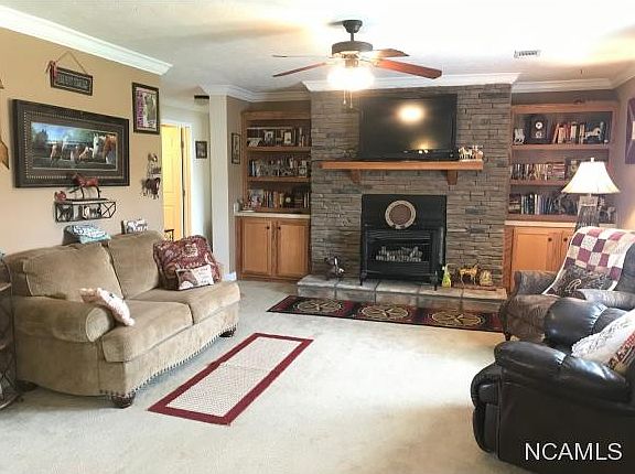 THIS HOME SITS ATOP THE ROLLING HILLS OVERLOOKING THE FARM WHICH HAS NUMEROUS BARNS, POND, AND A STORM SHELTER. THERE'S ROOM TO RAISE KIDS TO A HERD OF LIVESTOCK. THIS IS A "MODULAR" HOME WITH A PERMANENT FOUNDATION. THREE BEDROOMS ADJOIN THE LIVING ROOM AREA AND THE MASTER BEDROOM HAS AN ADJOINING DEN AREA. BOTH FAMILY AREAS TIE BACK INTO THE KITCHEN. ALONG WITH THE LARGE KITCHEN AND DINING ROOM, THERE IS PLENTY OF ROOM FOR ENTERTAINING. NUMEROUS BARNS, CARPORTS, AND SHEDS ALLOW FOR PARKING ANYTHING WHICH MAKES HORSEPOWER. FENCED
