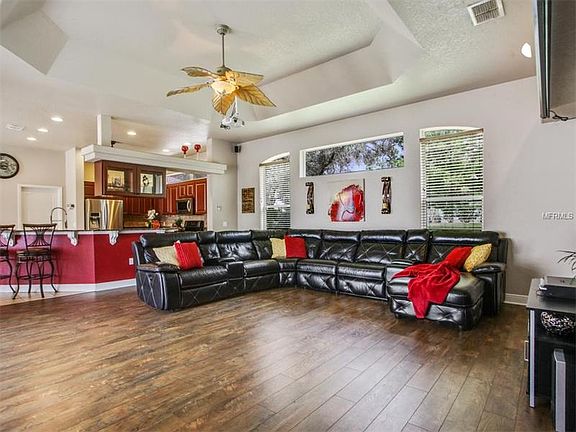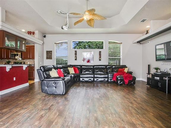 Beautiful 4 bedroom, 3 bathroom, 3-car garage Cabana-style home on a huge corner lot in the heart of Springhill. Gorgeous double glass doors welcome you to the foyer, where you have a prime view of your private fenced yard and screened lanai. The fabulous kitchen features gleaming granite counters, rich cabinetry, tiled backsplash, stainless steel appliances, transom windows for extra light, a ceiling fan, and an expansive breakfast bar. There is also an eat-in nook for casual dining which has bright windows and a door leading to the yard. The kitchen overlooks the family room, making this home ideal for family gatherings! The family room is perfect for entertainment and boasts a lovely tray ceiling, bright windows, and sliding glass doors to the backyard. The master suite features stunning, room for a sitting area, plus a double sink vanity in the master bathroom. This is a very attractive and unique floorplan on a ½ acre corner lot in Elwood Acres! Brand New A/C! Schedule your showing today!