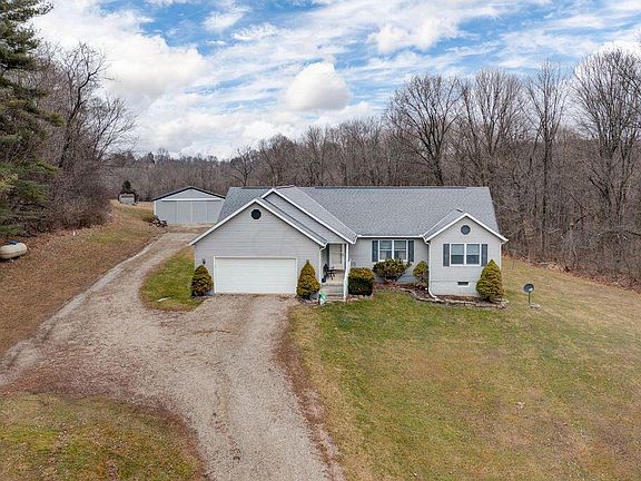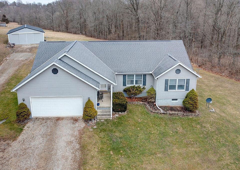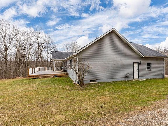 This remarkable property in Licking Valley Schools has 23+ acres with a creek that runs throughout the wooded areas and multiple bridges for your family to enjoy. Lots of wild turkey, deer and other wildlife on the property to hunt or just watch too! Ranch home features newly built deck to relax on, 3 spacious bedrooms, 2 full bathrooms and a huge walkout basement that could easily be finished for additional living space. Large Pole barn with the option for horse stalls and only a 40 min drive to Intel, enjoy country living with more affordable property taxes!