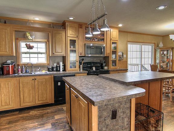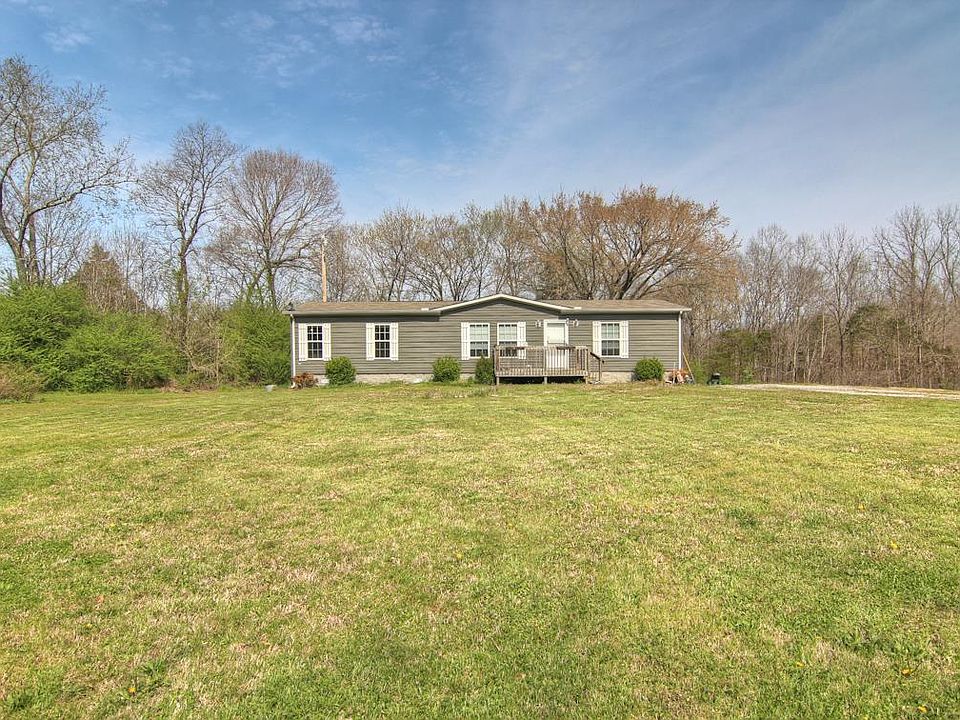 Clayton home on permanent foundation. Sits on just under 3 acres with spring fed pond. Close to I-40. Covered back deck, open eat-in kitchen with storage. Master bath has walk-in closet and more built-in storage!