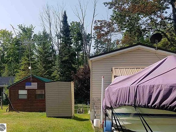 Wow what a nice setup!! 900 sq ft in the main home and 220 in the guest house 60 feet on the Rifle river!!! Owners have put only the best into this property. The main house has central air, water resistent carpet and laminate flooring through out. A artesian well supplies water to the main house and the guest quarters. The guest house is omish built & has it's own bathroom, mini refrigerator, toaster oven, and coffee pot . The property also has 2 Storage sheds, 1 which has electic and water. There is solar lighting throughout the entire yard, satellite phones system is in place. This is a beautiful part of the Rifle river, you can walk into the river from your very own yard.