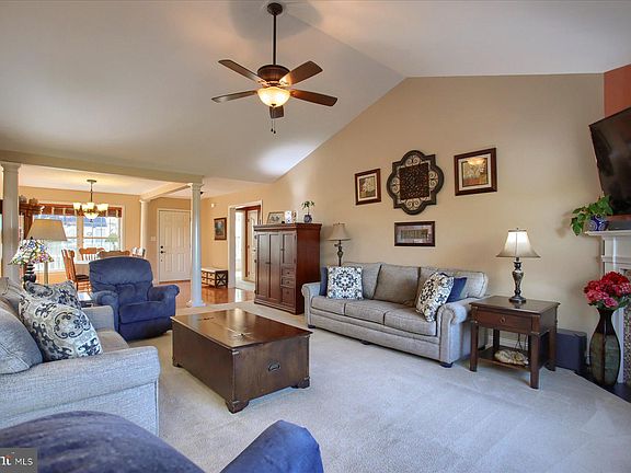 Come make yourself at home in this beautiful, well-maintained house with desirable One-level living and Split floorplan. As you enter from the welcoming Front porch find the lovely Dining room with hardwood floors to your right and Living room straight ahead. To the left are a full Bath, and two nice-sized bright Bedrooms with ceiling fans. The Living room features Cathedral ceilings, Gas fireplace with mantle and Ceiling fan. Don’t miss the farm field and mountain views just past the private backyard that backs to common area. Moving into the kitchen you will find a breakfast nook which opens to a Composite deck with awning and steps down to a Paver patio extending outdoor living area. The Kitchen boasts granite countertops, under cabinet lighting, desk space and custom-built pantry. Just off the kitchen is the spacious, private Primary Suite which features Ceiling fan, Full bath and Custom walk-in closet. Heading downstairs you will find so much fabulous space! Star of the show - Theater area with projector, surround sound system, and 100" screen for movie watching. Plenty of space for crafts or working out. French doors lead to flex space currently used as a 4th bedroom with chair rail and walk in closet, but also perfect for home office. Plus two generous storage areas with shelves. Updates include - 2017 shed, composite deck; 2018, replaced central air; 2019 tankless hot water heater, sump pump/pit, closet in lower-level bedroom; 2021, awning on deck; So much to love about this warm, inviting home, just waiting for you to make it yours.