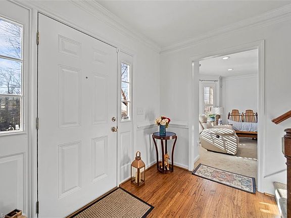 Beautiful home in Bay Creek! This 3 br, 2.1 bath home has been updated with fresh paint and includes previously renovated kitchen and baths with solid surface countertops, soft close drawers, tile backsplash and smooth cooktop range and oven. Refrigerator remains. Abundant hardwood flooring on the main level and a formal dining room that can also be used as flex space to fit your needs. Need another flex space? Try the finished basement room that would be perfect for a home theater, gym, office or playroom. Large primary bedroom with walk-in closet, huge bathroom with separate vanities, shower and jetted tub. Laundry conveniently located on upper level with bedrooms. Did we mention the two-car garage, deck, fenced yard for play, and an inground, fenced pool? Check out this great option near Wake Forest University and Reagan High School.