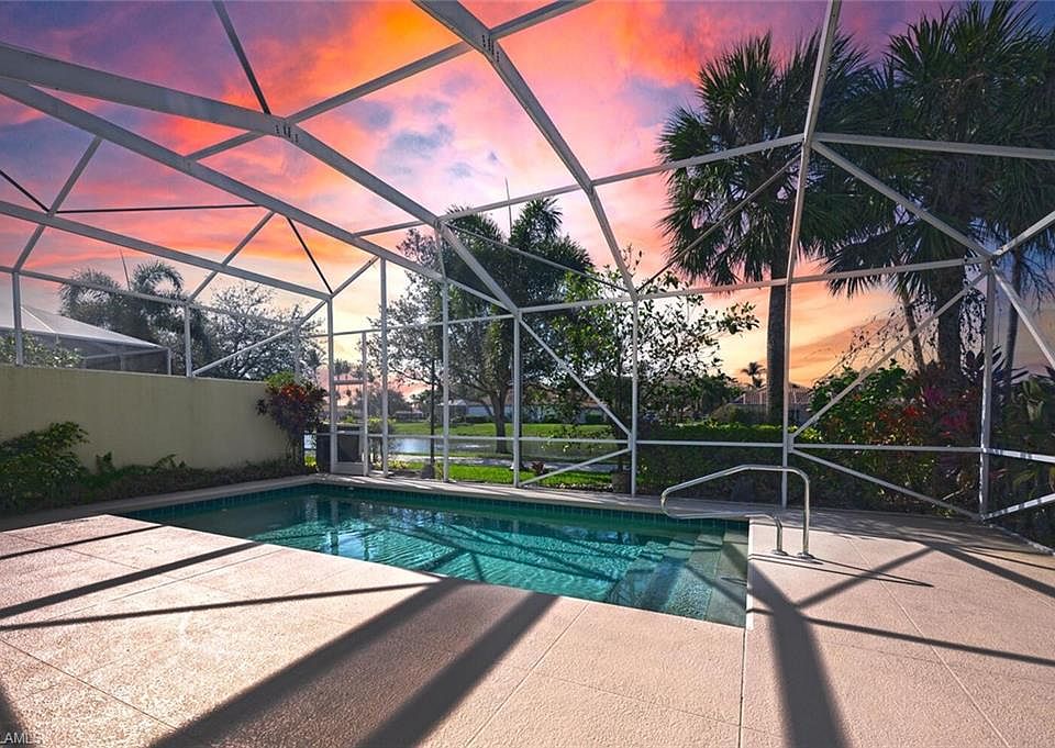 ***ACCEPTING BACKUP OFFERS*** Location, Location, Location! Rarely available Oakmont cul de sac location residence with northwestern exposure for beautiful evening sunsets. This stunning three-bedroom plus den heated salt water pool home blends sophistication and serene natural beauty. Nestled along the water's edge at the end of a cul de sac the Oakmont floorplan offers both relaxed living and formal entertaining. Twelve foot volume ceilings and expansive windows (with electric hurricane shutters!) sweep the space with natural light and provide breathtaking panoramic northwestern views (the sunsets!). Freshly painted interior, Viviant security system, plantation shutters, and interior/exterior sound system are a few noteworthy upgrades. Located in a convenient area in North Naples, this home provides easy access to local dining, shopping, beaches, and outdoor activities. Whether you're enjoying morning coffee on the lanai or hosting unforgettable gatherings, this property offers an unparalleled lifestyle in the amenity rich community of Island Walk. Start living your best Florida life at 4085 Trinidad Way! Some photos are virtually staged with furniture to show the Oakmont floorplan's potential.