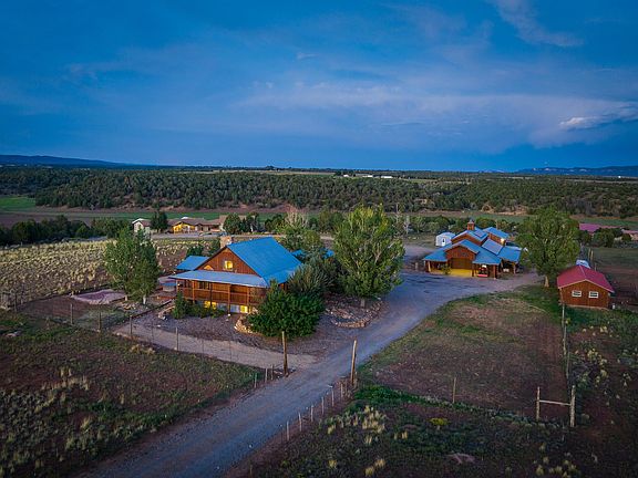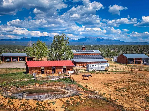 Beautiful mountain style ranch with TWO HOMES, and several outbuildings offering amazing La Plata Mountain views. The ranch is benefited by convenient year-round access located off HWY 140 and county-maintained CR 119. This 40-acre property is fully fenced and cross-fenced, providing 3 separate pastures for cattle or horses. The 11.7 kWp solar panels (approx. $45,000) located on the barn was installed by Shaw Solar in 2018, and it produces approx. 21 MWh per year. The excellent water well produces at 15GPM, was drilled in 2015 and both homes have extensive reverse osmosis water filtration systems. Plus, there are two 1,800-gallon cisterns serving the main house, and one 1,200-gallon cistern serves the second home fed by the water well. There is also a 1200-gallon cistern located by the chicken coop. This property offers everything you need for country living! The property has a new electric (solar powered) gate at the driveway to welcome you home! MAIN HOUSE: The 3667 sq. ft. main house features 3 bedrooms, 2.5-baths, office, beautiful sunroom, and a finished basement with a family room and a bonus room currently used as a gym. A convenient mudroom with built-in bench and coat rack leads into the kitchen with access to the remodeled laundry room. The kitchen features abundant hickory cabinetry, newer stainless-steel appliances, Corian countertops, granite-topped bar seating, slate tile backsplash, copper accents and a huge walk-in pantry including the refrigerator. The spacious living area centers around a stone hearth surrounding a wood stove, sufficient for heating the entire two main levels of the home, and offers a cathedral ceiling, Saltillo tile flooring, and views of the La Plata Mountains. Glass doors lead to a large deck and deer-fenced yard great for entertaining with new xeriscape landscaping, new drip line system for plants, built new deck area for hot tub, and mature shade trees. The main level also includes a cozy office, brick-floored sunroom, powder room and the master suite with a cathedral ceiling and attached bath. Upstairs are two bedrooms with built-in bunk beds and a full bath. Pine walls and ceilings are found throughout the home. A covered walkway leads to the 4-carport garage. SECOND HOUSE: Also on the property is a modular home sited to maximize privacy and the far-reaching views of the valleys and hills leading to the La Plata Mountains. The freshly painted home offers many opportunities, including a guest house, private home for parents or children, or a rental for additional income. This 2189 sq. ft. home has 2 bedrooms both en-suite, office/craft room, 2 baths and an enormous 3-car enclosed garage with storage shelving. Built on a linear floor plan, nearly every room has views of the valley and mountains. The spacious kitchen boasts plenty of counter space, maple cabinetry, new granite countertops and backsplash, new GE black appliances, and bar seating. Large windows pour in light to the living area and a wood burning stove helps heat the home. The owners also added wonderful front and back covered patios. OUTBUILDINGS: This magnificent property will meet nearly any need for country living. The huge barn is 40 x 46 with water, power, concrete floors, workshop with 220-volt outlets and enclosed loft area. The barn also has large doors on both ends to easily drive heavy equipment through. The barn has additional covered parking on the side, great for boats, RV or heavy equipment. There is a RV hookup with water, sewer and electricity on the property. Also on the property is a loafing shed with 3 stalls and tack room and additional hay barn that is currently enclosed as a chicken coop with new electrical and heat lamps. Additionally, an approximately quarter acre deer-fenced garden lies between the two homes with a greenhouse to extend the growing season. This amazing property is perfect for small-scale farming, home business and hobbies or simply to play in the gorgeous Colorado country!