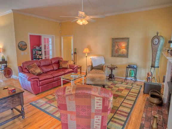 Highly customized 4bd/2ba bonus room home w/sunroom, hardwood floors throughout, circular driveway, over-sized garage, front porch. Designer kitchen features granite counter tops, high quality cabinets with glass door fronts, breakfast bar, stainless steel appliances, gas stove top, wall oven, built-in microwave, and dishwasher. Washer and dryer stays with home. Expansive dining room perfect for entertaining. Living room has brick-faced gas fireplace with remote-controlled thermostat, and Bose speakers for your television. Customized heated and cooled sunroom with floor to ceiling windows. Master suite offers a double sink vanity, ceramic tile floors, shower with large rain head faucet, and Jacuzzi tub with water temperature controls. Crown molding throughout. Designer lighting fixtures, ceiling fans, and plumbing fixtures. Wrap-around back and side deck. Wireless Security system. Sprinkler system. Termite monitoring and pest control contract. Walk-in attic off 4th bd/bonus room.
