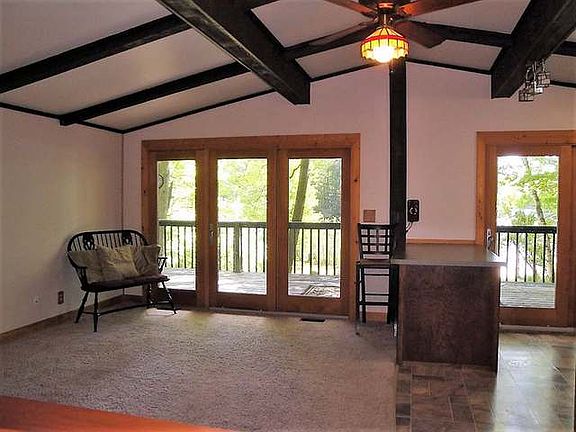 This cute, 2+ bedroom, 2 bath walk out ranch home offers 150 feet of southwest-facing fisherman frontage on Bass Lake of the Rhinelander Chain of lakes. The no-through road leads to a blacktopped driveway and two car garage with heated workshop in back. There is a 38 x 10 foot deck overlooking the beautiful, landscaped one-acre lot and gradual slope to the floating, L-shaped pier. The vaulted, open concept living room and kitchen have dual patio doors that overlook the lake, and two bedrooms and a full bathroom complete the main level. Downstairs, the spacious family room has dual patio doors and a stone, gas fireplace. A guest room or office, full bathroom and utility room also occupy the nicely finished lower level. A fenced in dog kennel is accessible from the deck. Other amenities include a metal roof over the home and garage, a peninsula breakfast counter, central air, updated kitchen and bathrooms, knotty pine accents, cathedral ceiling, appliances and a home warranty.