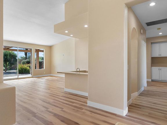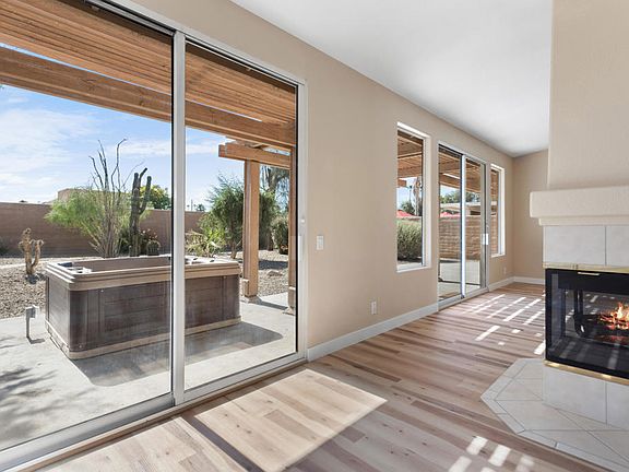 Welcome to your dream oasis in the heart of Palm Desert! This over 2000 square feet, 3 bedroom and a den house has been extensively renovated top to bottom in 2024 .The kitchen features brand new cabinets, quartz countertops, and all-new stainless steel appliances. Revel in the open concept design connecting the kitchen to the living room and breakfast nook, offering a seamless flow for entertaining or relaxing. Vaulted ceilings accentuate the spaciousness, while a three-sided fireplace adds warmth and ambiance. Walk through the double doors to the grand primary suite with a lavish bathroom featuring dual sinks and a sprawling 10-foot shower. The den area next to the kitchen can be utilized as a formal dining room or an office. Natural light floods the guest bathroom, complete with a skylight and expansive mirror. Plus, skip the pool maintenance and unwind in the brand new spa hot tub. Brand new HVAC. With a prime location near Monterey and the Hovley corridor, this home epitomizes desert luxury living. Don't miss your chance to call it yours! This is an amazing deal right under $700,000 in the central Palm Desert.
