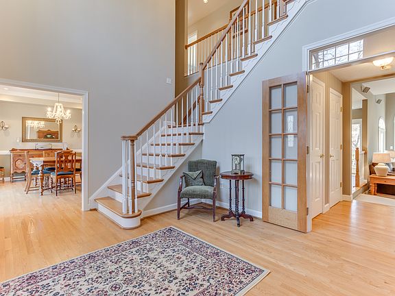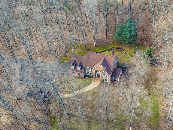 Spectacular custom-built home on a beautiful 3.9 acre wooded lot that offers privacy yet close to Leesburg with no HOA. This exceptional home is loaded with upgrades including hardwood floors, custom paint, new carpet on the upper level and upgraded lighting. Great curb appeal with a circular drive and sideload garage. Front walkway leads to brick stairs and upgraded front door. Custom built separate carriage house on the property with a wood burning stove and electric makes a great workshop. Carriage house also has loft area for additional storage. **MAIN LEVEL** Dramatic entrance two-story foyer, upgraded chandelier, hardwood stairs and sanded and stained hardwood floors. French doors with glass transom lead to rear of home. Updated kitchen with tray ceiling, breakfast bar, granite, upgraded cabinetry and stainless appliances including double oven and 5 burner cooktop. Huge walk in pantry and rear staircase. Large breakfast room features chandelier, recessed lights and wall of windows with an incredible view of the back yard. Sunroom features vaulted ceiling, overhead ceiling fan with light and a wall of windows with great views. Dining room has sanded and stained hardwood floors, tray ceiling, recessed lights and upgraded chandelier. Dining room includes box bay window, crown moulding and a butler?s pantry with pass through to the kitchen. Huge family room with vaulted ceiling and recessed lights and a beautiful floor to ceiling brick wood burning fireplace. Main level also features a powder room and a large mudroom/laundry room with sink. **UPPER LEVEL** Beautiful master suite features new carpet, walk in closet, separate sitting room with a gas fireplace. Large master bath with dual vanities, ceramic tile, two skylights, soaking tub with jets and separate water closet. Upper level also features two additional large bedrooms with new carpet and 2 additional full baths as well as a loft area that is easy to convert to 4th bedroom with hardwood floors. **LOWER LEVEL** Huge recreation room with recessed lighting and bar area. Nice den/media room and a 4th full bath. Separate exercise area and ample storage and workroom. **COMMUNITY** This beautiful home has been meticulously maintained and updated. High efficiency 5 ton heat pump with variable speed compressor and programmable thermostat (March 2010), Roof (April 2011), Skylights (April 2011), Siding (March 2008), 6? Seamless Aluminum Gutters (March 2008), Water heater (March 2010), Kitchen (March 2009), Patio with stone wall (April 2011), Windows in sunroom and loft (March 2008)