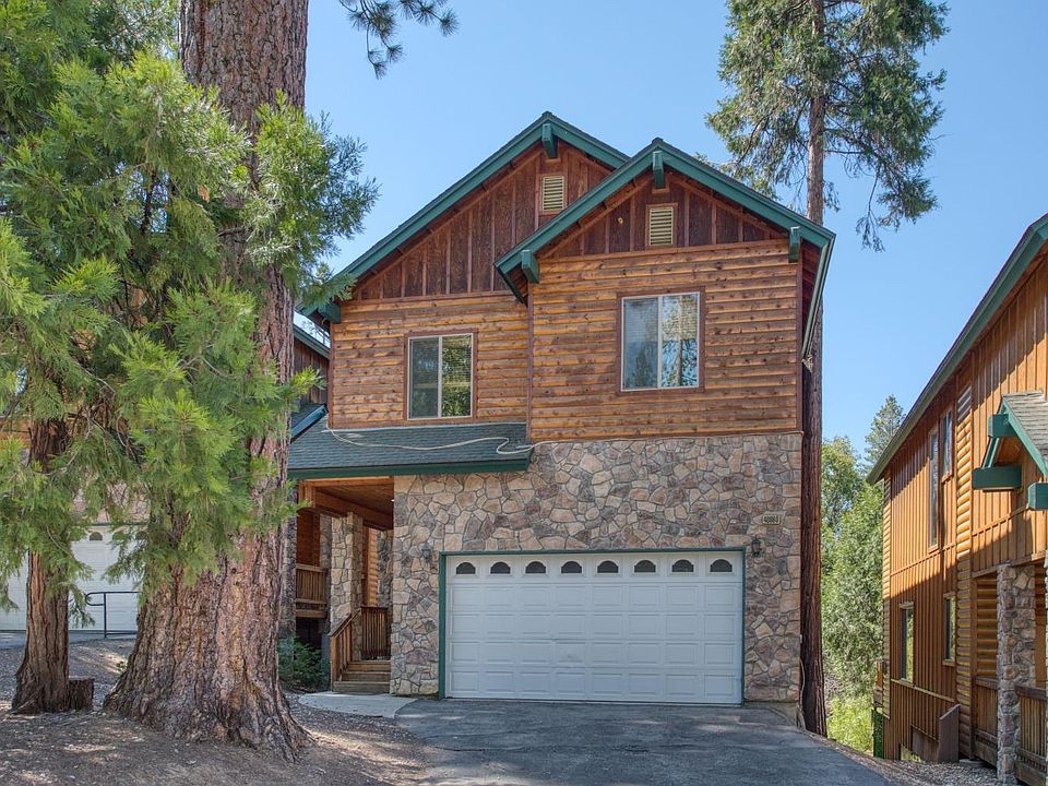 Best deal on the market! This lovely log-wrapped, 3 level free-standing condominium is located in the popular Sierra Pines development just south of the Shaver Lake Village! With 6 bedrooms/4baths providing sleeping accommodations for 14, plus a nice game room with pool table, this beautiful property makes a great family getaway, and/or short-term rental. With just under 2700 sq. ft. of living space, plus 2 outdoor decks/patios there is ample space for entertaining both indoors and out. Interior finishes reflect a beautiful rustic elegance with knotty pine cabinetry, granite countertops and stone accents. Upstairs features the luxurious master suite with jetted tub, plus 3 guest bedrooms and 1 guest bath. Downstairs offers two guest bedrooms, 1 bath and the awesome game room. Fully equipped with central heating and a gas fireplace for those snowy winter months, plus an attached 2-car garage for convenience parking. Just a couple minute drive to town or the lake, and only 20 minutes to China Peak, this property is conveniently located for both summer and winter activities. Come see!