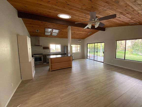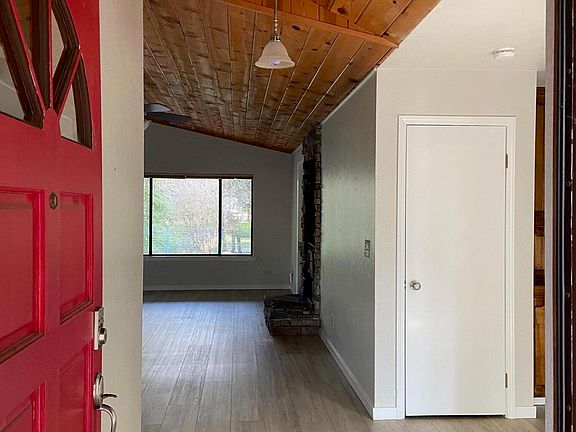 Very attractive, upgraded, single story, 3 bedroom, two bath, 1415 square foot home in the wonderful neighborhood of Cherokee Oaks, a peaceful and walkable neighborhood in Three Rivers. The home's vaulted wood ceilings, luxury vinyl floors, quartz counter-tops, open floorplan, woodburning stove and newer HVAC system give it a feeling of space and comfort. Situated on just over half an acre, the rear yard has a woodsy setting where you can relax in your covered patio, overlooking a seasonal creek, a perfect place to unwind. There is also a wonderful child's play structure in the rear yard.