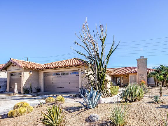 Take advantage of this wonderful opportunity to own a home in Palm Desert! No HOA, and conveniently located. Offering a spacious floor plan with 3 bedrooms, 2.5 bathrooms, and a 3-car garage. This home is to be sold FURNISHED allowing you to move right in. Arrive to see a freshly painted exterior, and a beautiful low maintenance front yard with desert landscape. Enter to a large living room, formal dinning room, and minibar. Large master suite offers egress to pool, complete with a spacious bathroom with dual sinks, walk-in closet, walk-in shower, and tub. Rooms two and three are separated by another large bathroom with dual sinks. Both rooms are spacious with one currently being used as an office. Large kitchen includes breakfast and dinning area with extra living space that includes a fireplace. Tour the back yard to find a beautiful pool and spa, newer surface flooring that covers entire yard, and lounge area situated under the homes overhang. In addition, the home comes equipped with OWNED solar, newer HVAC system, and newer tile flooring throughout the home. Interior was also painted in 2019.