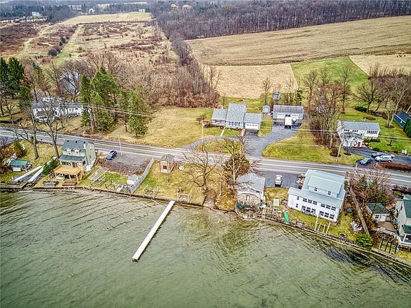 Relax and enjoy the sunsets over the water! This well maintained year round cape cod features; 100' of lakefront, 4 car detached garage with loads of storage, first floor master bedroom, updated kitchen (6 years new) including appliances, gas fireplace in living room, gas furnace (2010) and central air conditioning (2014), hot water tank (2017). Tear off roof for house (2015) and detached garage (2011)Outside the sliding glass doors is a fabulous deck, plus an above ground pool and patio to entertain your family and friends. HUGE yard for ATV or snowmobiling. This sale includes the 100 ft of waterfront property across the street, shed, boat hoist & the dock. This is a fantastic property to relax and enjoy lake life!