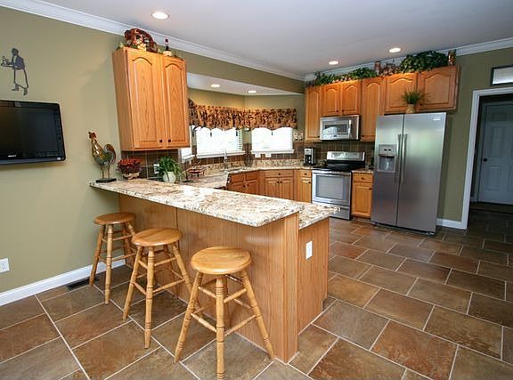 Beautiful Brick & Stone Elevation. 3 car generous sized garage. Professionally landscaped front and back yard. Nice private setting with pergola and patio. Grand entry-soaring ceilings,wood floors, vaulted & coffered ceilings. Updated paint and custom touches throughout. Greatroom w/palladium wall of windows, gas stone & brick fireplace. Elegant dining room w/pillar accents. Formal living room or perfect for a home office/den with bay & crown molding. Gorgeous kitchen featuring upscale tile flooring, granite counters, crown, planning desk 42'cabinets, recessed lighting, stainless appliances. MFL w/tile, cabinets & crown. Master suite w/coffer, fan & oversized bay window. Beautiful luxury bath w/granite oversized tub, separate shower, wide blinds. Bed 2 & 3 w/custom crown moldings in large closets. The finished lower level offering a rec room, deep pour, full bath w/ceramic tile, game area, billiard area. Large unfinished space with plenty of storage. Silent floor system. Stunning home.