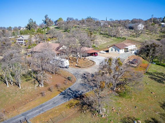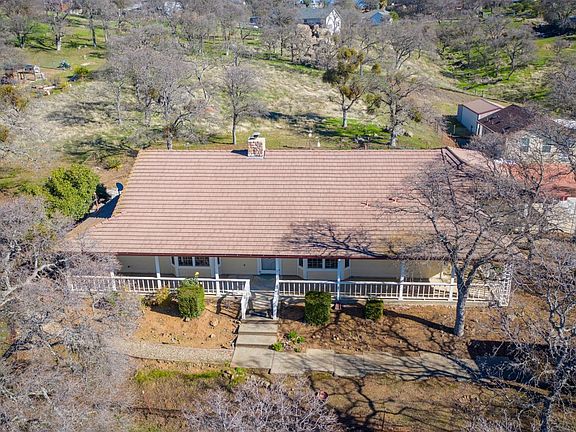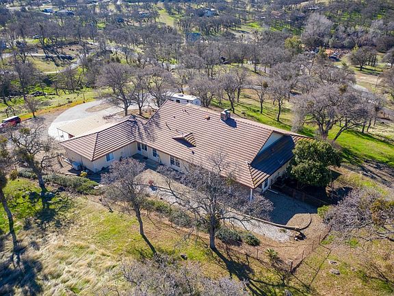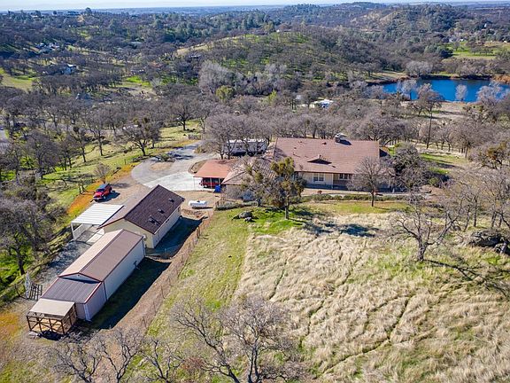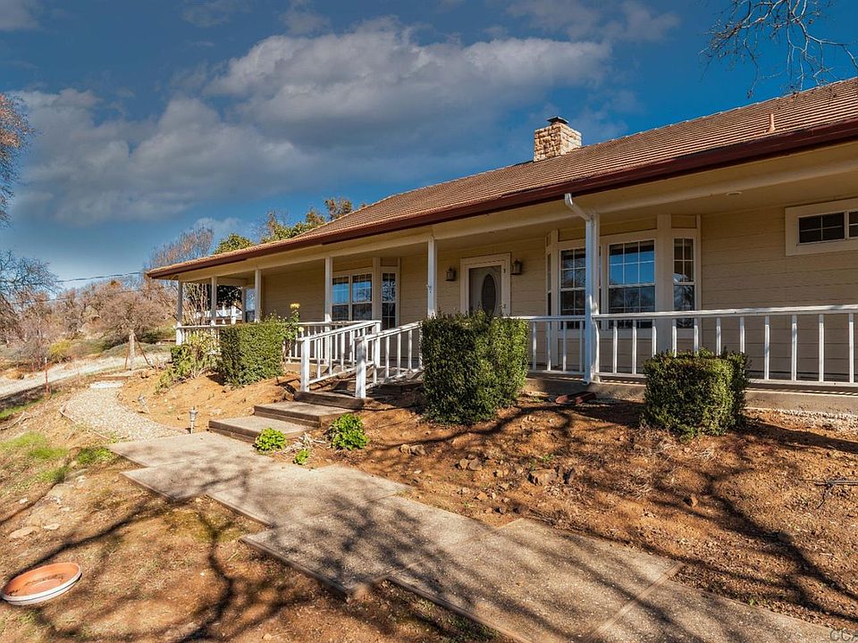 Enjoy peace and tranquility and the private setting that this contemporary farm style home has to offer. Situated on 3.03 usable and fenced acres. Cement siding and covered wrap around porch. Covered breezeway and 880 sq ft 4 car garage. Great room with vaulted wood ceilings and wood burning fireplace with stone hearth. French doors open out onto the covered tile back patio. Enjoy the filtered views of the pond across the road where residents can fish. Private and spacious master suite with spacious walk in closet. Two guest bedrooms, gourmet kitchen with walk in pantry and convenient inside laundry and half bath. Detached metal garage and shed and approx 700 sq ft detached recreation room or home office for distance working and learning. Permitted as an office and rec room with full bath. Private and gated driveway convenient location private yet not remote. Generator system for both detached office/rec room and home, runs all appliances in power outage.