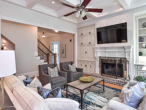Wonderful open floor plan with 10' coffered ceilings in the family room open to the kitchen and big breakfast/keeping room. Great cook's kitchen features 6 burner professional stove, center island & huge walk-in pantry. Master suite with sitting area, fireplace, large bath & closets. Terrace level with playroom, theater room, and wine cellar. Walk-out private back yard at kitchen level with a pretty patio and plenty of room to add a pool. Fresh paint and new carpets throughout the house makes it move-in ready! House is NOT in flood plain/ no flood insurance required