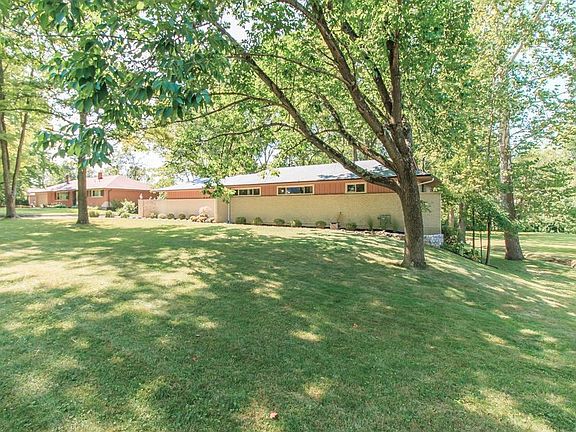 Beautiful brick & cedar contemporary home. Park-like private setting w/trees, streams & lovely landscaping! An abundance of natural light & spectacular views fill every room. Open concept foyer/living/dining w/exposed brick overlooking backyard w/huge treated, cedar-stained deck for outdoor dining/entertaining. 45' of glass doors let the outdoor feel inside! Pergo oak laminate floors, WBFP. Kitchen has maple cabinets, Corian countertops, SS appliances w/double-oven. 3 nice sized bedrooms plus renovated full bath w/Jacuzzi jet tub! Master Suite w/doors to deck, double closets & luxurious walk-in ceramic tile shower. LL has 2nd living room w/wall of windows & access to covered patio, WBFP, 4th bedroom w/full bath, large laundry rm w/extra storage & bonus room perfect for study/office or home gym. Don't forget the unfinished extra storage space as well as a 2 car attached garage. Roof replaced in 2011. Beauty, comfort & nature???this home has it all! Fireplaces & chimneys not warranted.